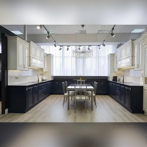 Большая п-образная кухня Адель — п‑образная кухня создаёт замкнутое рабочее пространство, где всё необходимое находится в шаговой доступности. Такая планировка идеально подходит для активной готовки: холодильник, плита и раковина образуют удобный треугольник. Вместительные шкафы обеспечивают хранение всей кухонной утвари.