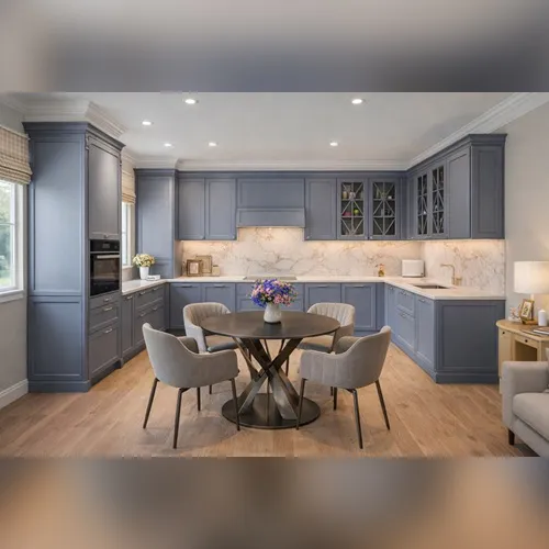 П-образный кухонный гарнитур Кристи — предлагает стильный кухонный гарнитур с продуманной эргономикой, обеспечивающей удобный рабочий треугольник, эффективное распределение модулей и логичное хранение, позволяющее минимизировать лишние движения, максимально использовать угол помещения и создавать организованную кухонную зону для повседневной готовки, хранения и комфортного обслуживания бытовой техники с удобным доступом к посуде, полкам и выдвижным системам.