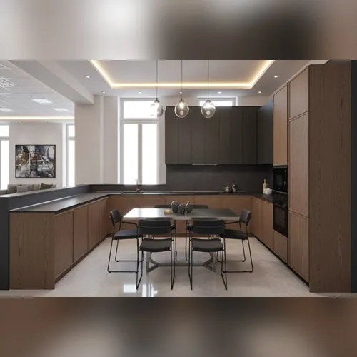 П-образный кухонный гарнитур Олимпия — п-образная кухня подходит для создания эффективного кухонного пространства с развитой рабочей зоной, где модульное хранение и эргономичная планировка обеспечивают удобный доступ к технике и посуде, сокращают время на поиск предметов и поддержание порядка, а гибкие решения позволяют адаптировать пространство под разные задачи с выдвижными модулями, полками и удобной организацией хранения.